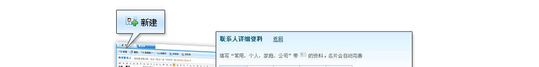 在“通讯录”页面,点击左上方的“新建”就进入到添加联系人的页面,填写好对方的姓名、邮箱、电话等资料,点保存即可。 |